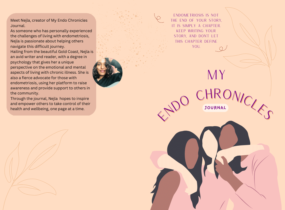Nejla has published a journal, titled My Endo Chronicles Journal, which is a daily reflection and gratitude tool designed specifically for those who struggle with endometriosis. This journal provides a safe space for individuals to express their thoughts, feelings, and experiences with endometriosis, while also providing inspiration and encouragement through carefully curated poems and quotes.